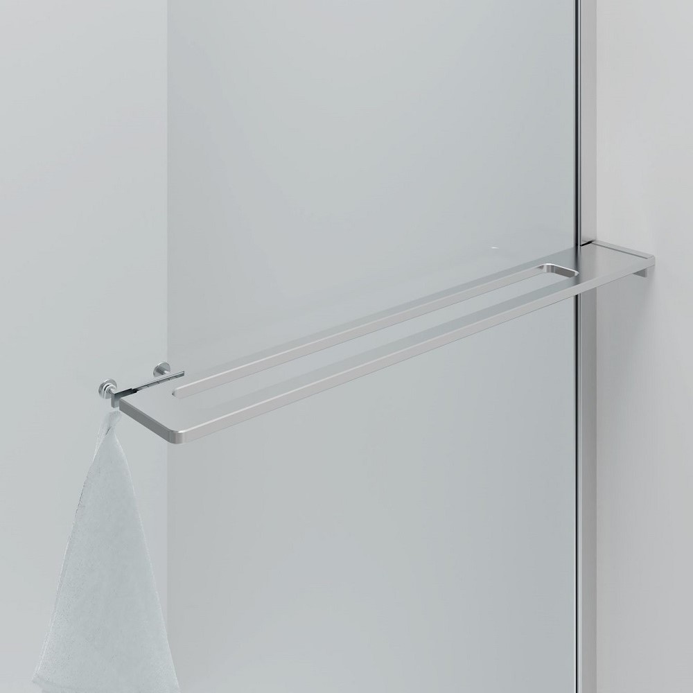 Een slim ontworpen handdoekhouder met geïntegreerde tablet en twee handige haakjes zorgt voor extra comfort én opberggemak. Je kunt deze zowel aan de binnen- als buitenzijde van de douchewand monteren – net wat jij het handigst vindt.