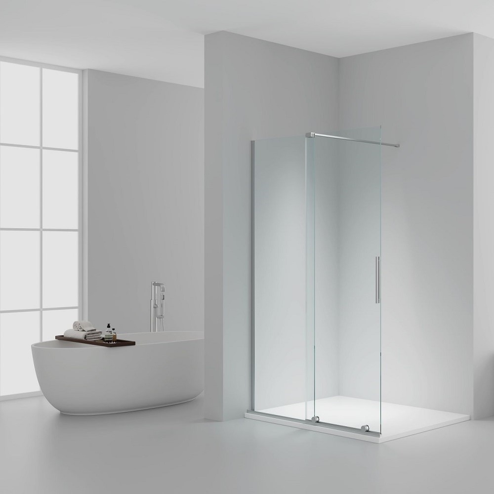 Met een verstelbare breedte van 1185 tot 1200 mm en een hoogte van 2000 mm past deze schuifdeur moeiteloos in verschillende badkamersituaties. Het gebruik van 8 mm dik gehard veiligheidsglas garandeert stevigheid en veiligheid. Bovendien is het glas aan beide zijden voorzien van een antikalk nano-coating, waardoor kalkaanslag minder kans krijgt en het onderhoud tot een minimum wordt beperkt.