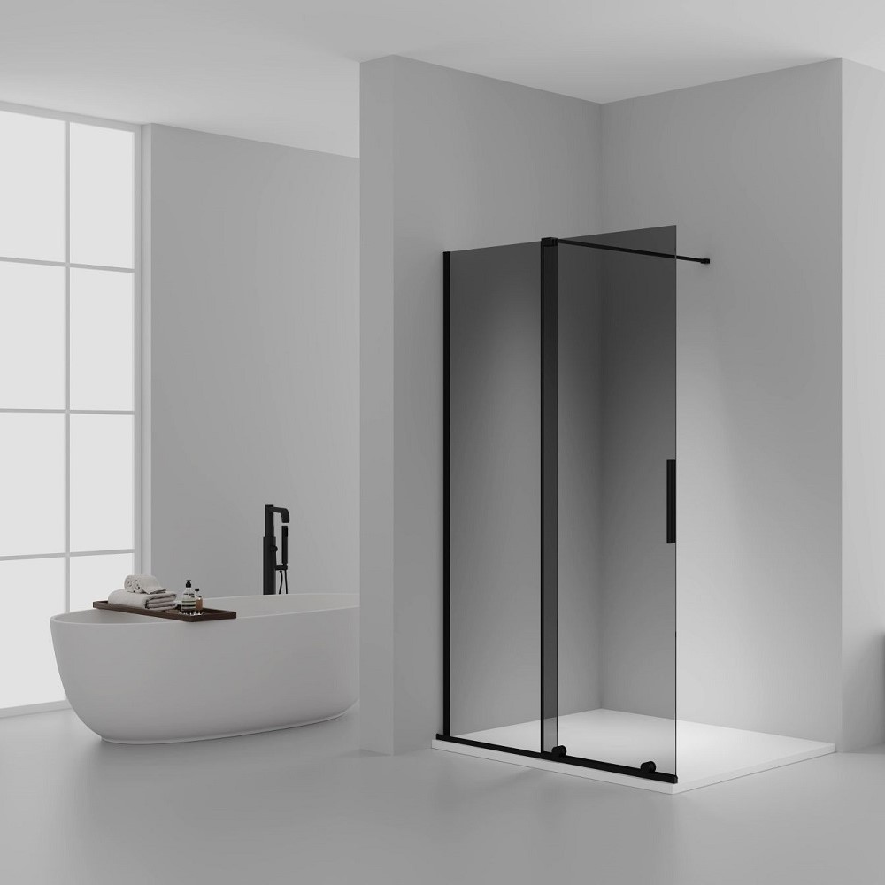 De X-Slide schuifdeur in mat zwart met grijs rookglas is een slimme en stijlvolle oplossing voor zowel een vrijstaande inloopdouche als plaatsing in een nis. Dankzij deze veelzijdigheid biedt de douchedeur maximale flexibiliteit bij het ontwerpen van de badkamer, ideaal voor compacte ruimtes waar comfort en design hand in hand moeten gaan. Vadi Concept biedt deze hoogwaardige glazen douchedeur aan voor wie op zoek is naar stijl, comfort en duurzaamheid.